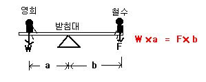 ¿µÈñÀÇ ¹«°Ô(W) ¡¿¹Þħ´ë±îÁöÀÇ °Å¸®(a) = ö¼öÀÇ ¹«°Ô(F)¡¿¹Þħ´ë±îÁöÀÇ °Å¸®(b)